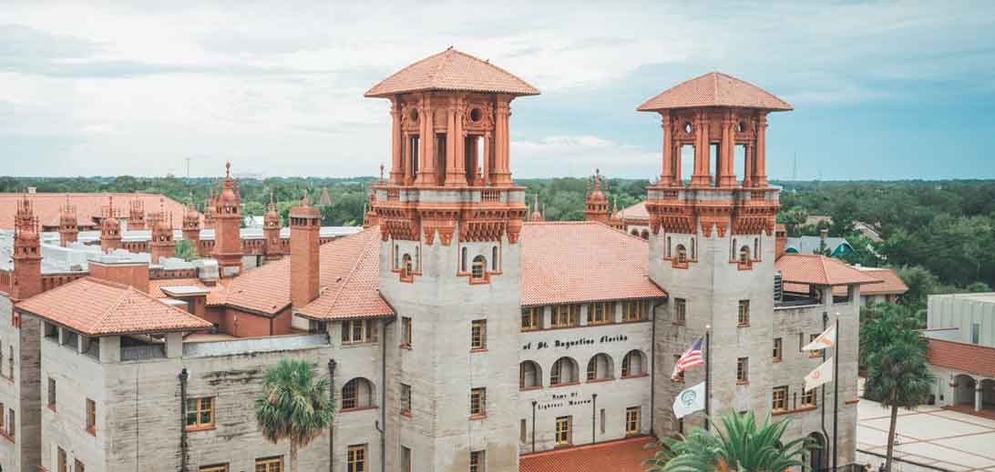 in St. Augustine. It was built as the Hotel Alcazar in 1887. The ceremony space is located in the deep end of a historic drained swimming pool. For video, this is a masterpiece. The multi-level architecture allows for cinematic angles you simply cannot get in a standard ballroom.Lightner Museum